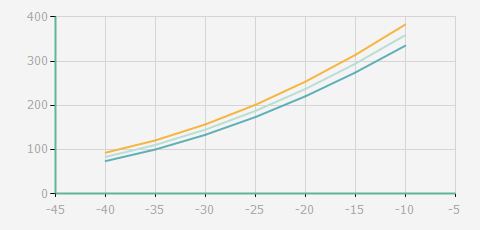 | 蒸發溫度 | 制冷量+/-5% | 能耗+/-5% | 現在能效+/-5% | 氣體流速+/-5% | 能效+/-7% | ||||